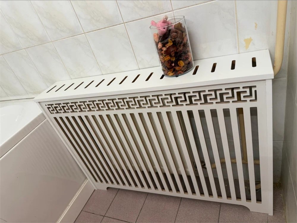 Экран короб для батареи отопления. Экран из мдф на чугунную батарею. Декоративная решетка на радиатор отопления .Ширина 100 см высота 60 см глубина 18 см. цвет белый. Модель Греция.